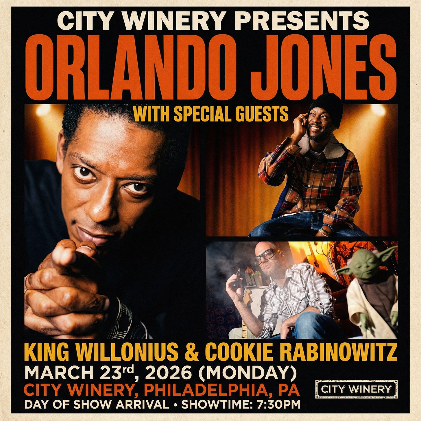I’m opening for Orlando Jones at City Winery Philadelphia on March 22. This hasn’t been officially announced yet but I wanted to let you know first. This is my first solo performance in years, and the first time I’m performing some of these songs live in front of people. I’m genuinely excited and to me, this is what it’s all about.